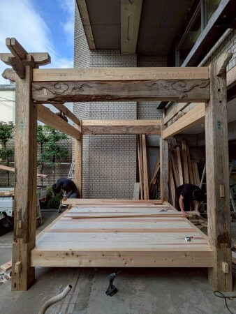 奥出雲仁王門の古材を用いて万博オランダ館にて茶堂を建設します。