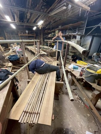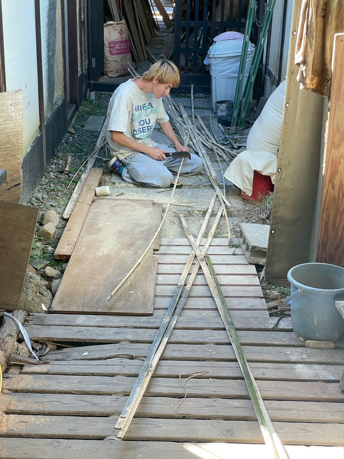 ネスくんが新しい竹で格子をつくりたいと、朝から長岡京の竹農家さんのところに行って切ってきました。がんばれ!