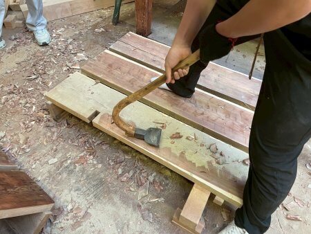 こちらはカンナ掛け。そりゃちょうなよりも早い。