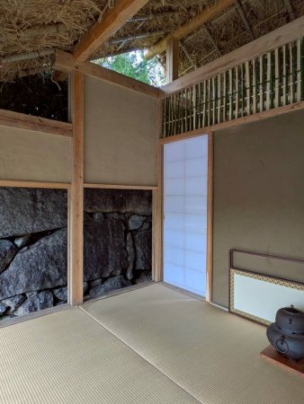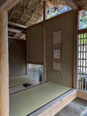 西室は風炉の2畳席、畳も障子襖も入りました。欄間の竹がいいね。