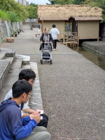 お餅をいっぱい食べて、みなさんと堀川茶室に向かいます。