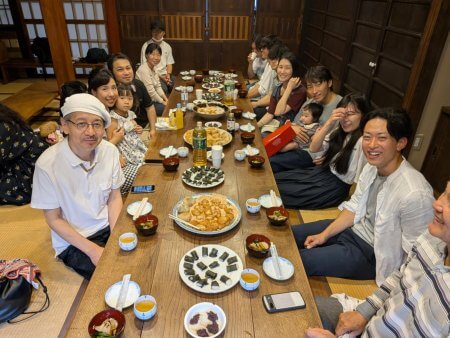 お客様たちみんな揃って20名ほどになりました。いただきま〜す!毎年同じ風景だなあ。