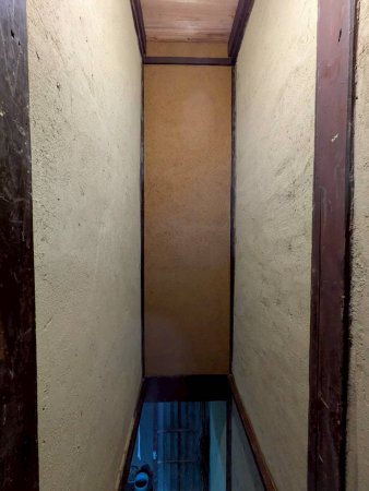 この土を庭側の壁に塗ってみた。まあまあだ。これを通り庭〜階段、庭に面した壁、トイレの壁に塗ることにした。