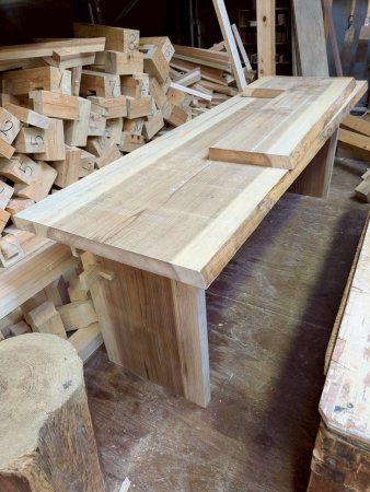 S田くんのほりごたつテーブルもほぼ出来てきました。ちょっと脚元が寂しいので、底板をつくってもらうことに。