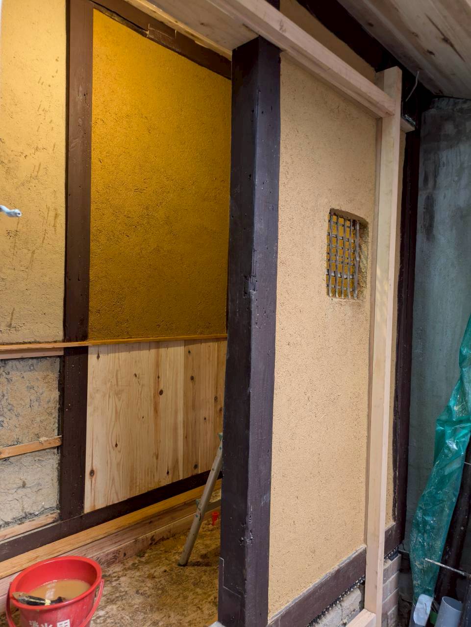 私はトイレの壁塗り。この日は下地窓の壁を。