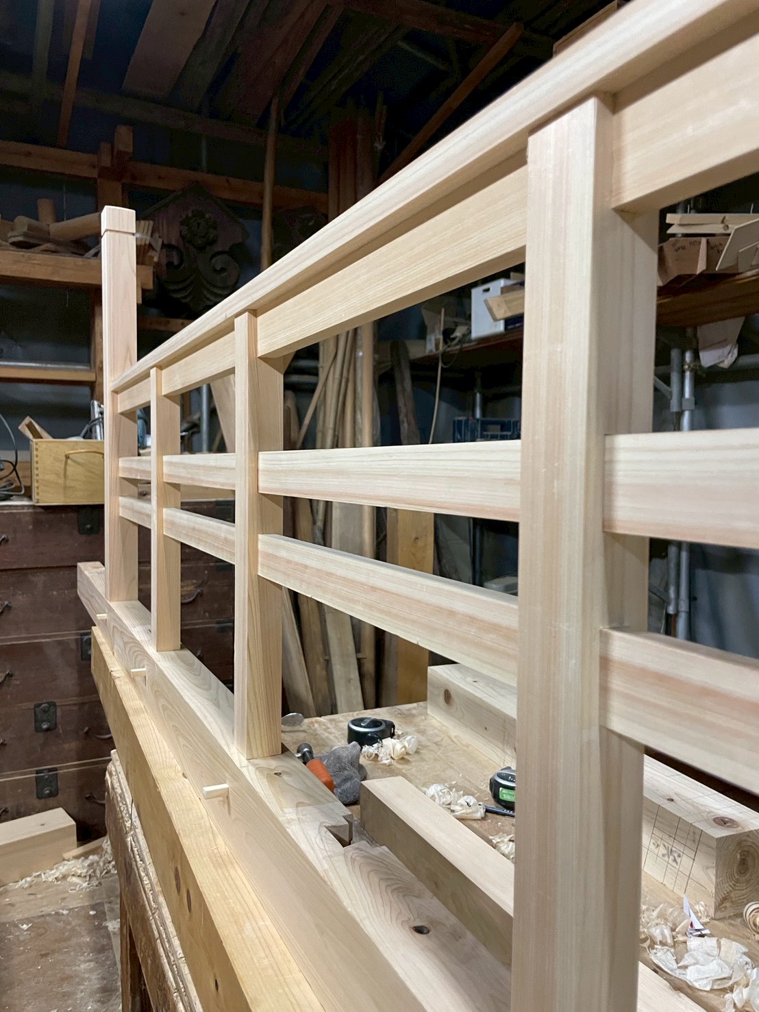 手摺がやっと出来上がりました。なかなかの出来です。明日、現地に据付にいきます。
