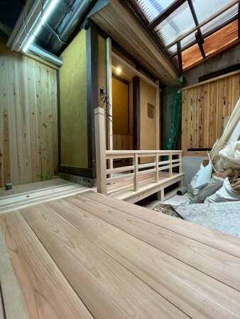 Y田くんの手すり付きの縁側(手前はS田くんの縁側)も出来上がりました。