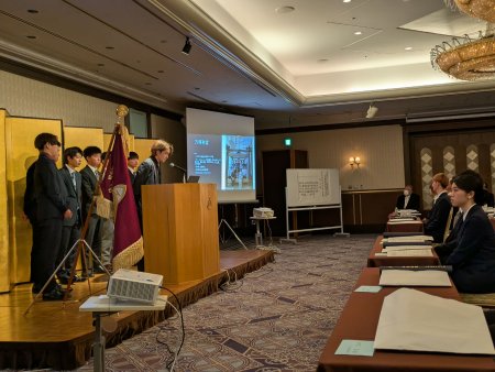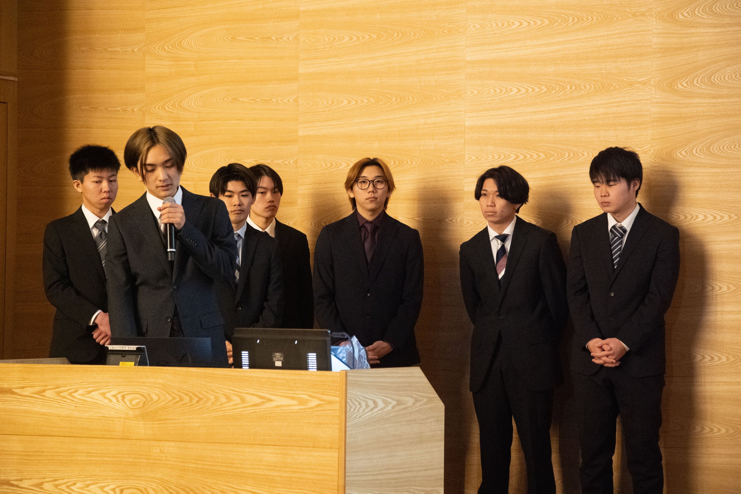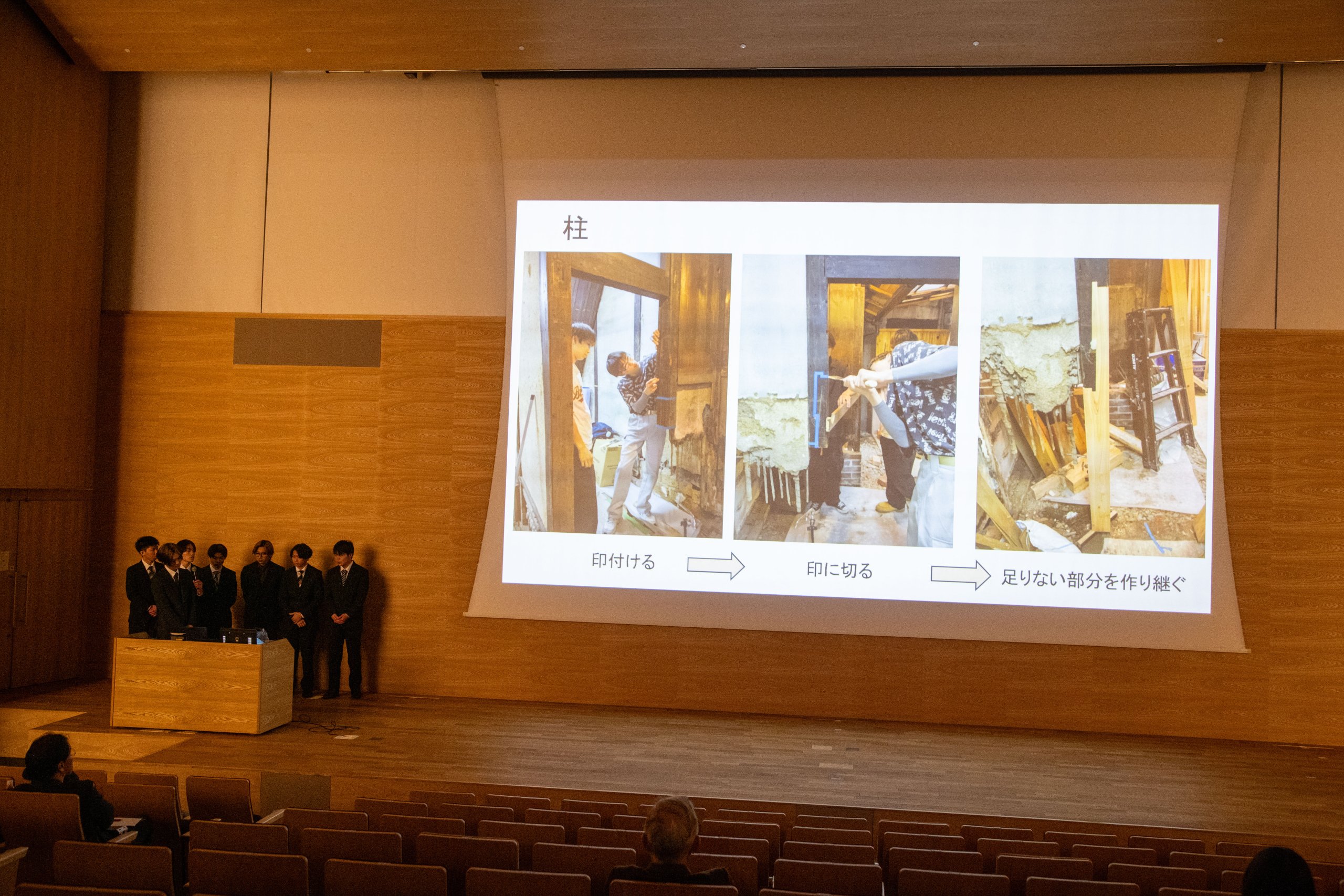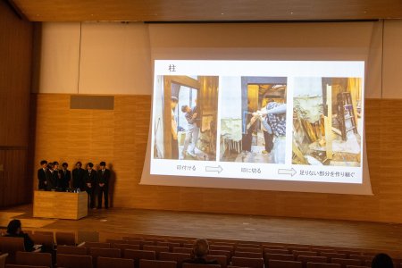 3月14日、卒業式。卒業制作優秀賞の木工チームによるプレゼンです。
