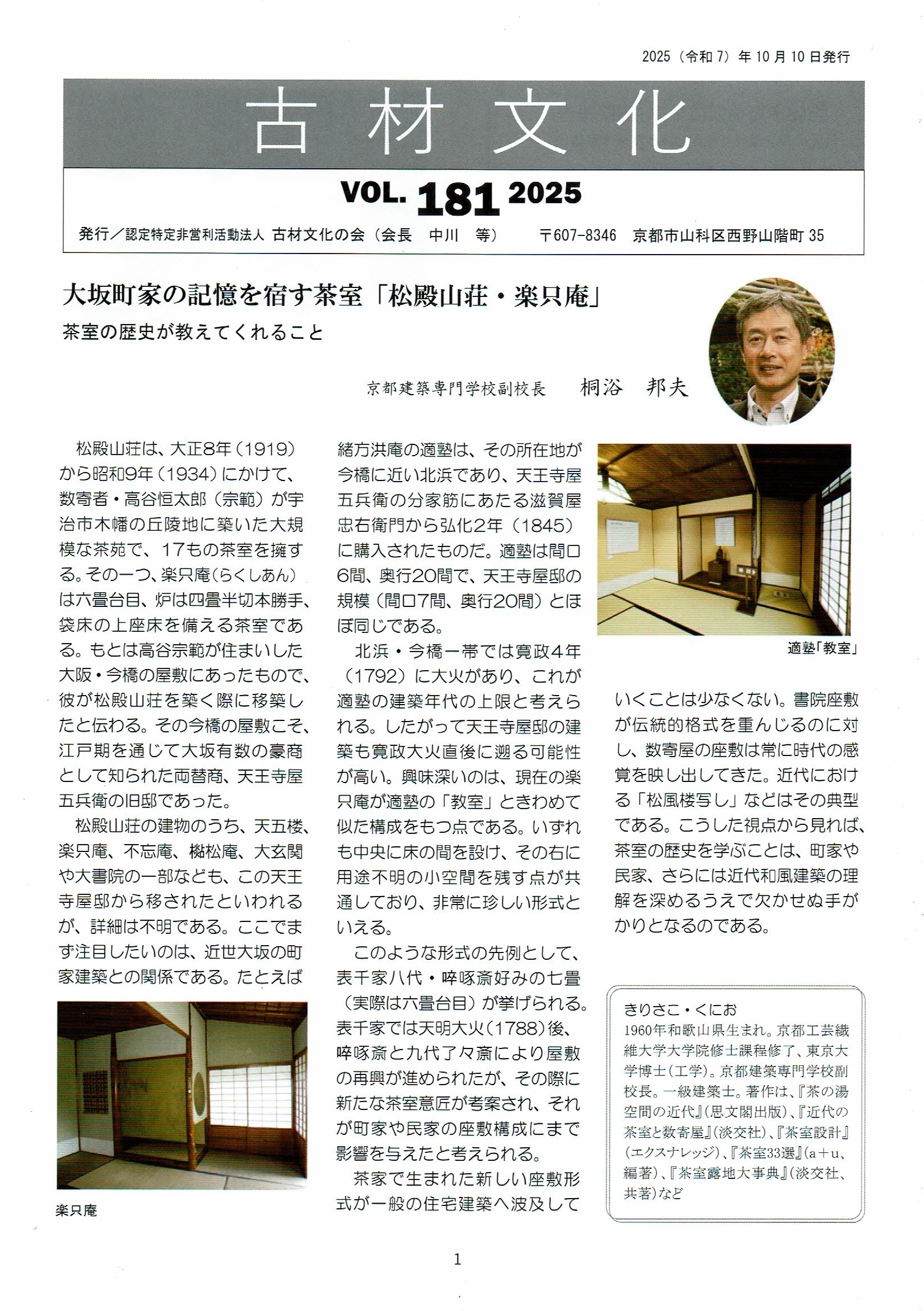 桐浴先生の文章が「古材文化№181」(発行:NPO法人古材文化の会)に掲載されました!